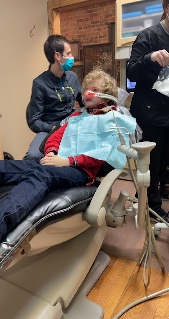 Right before Christmas, Beau woke up with a swollen face a terrible tooth ache. Turns out, he had a few teeth that had cavities that were now infected. (apparently we need to brush better). So he had to go in right away and then ended up pulling 3 teeth. He was so incredibly brave. I would have been such a baby, but he never complained once or cried leading up to it. They gave him laughing gas to help make him relax more, and boy did it ever! I have never heard him chatter so much and just talk about the most silly things. It was so funny to hear and see :) He is much better after getting those teeth out and now knows he MUST brush and floss better :)