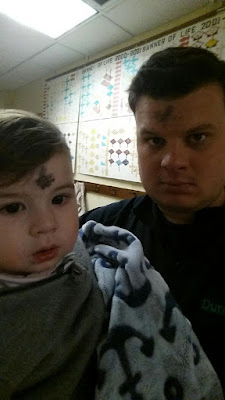 This year at Ash Wednesday service, both boys tagged along. I didn't think Beau would be interested in it, but to our pleasant surprise, he loved it! He was actually first in line to get the ash cross put on his forehead in front of the congregation. He was so proud he participated, although I am not sure he truly understands the meaning of Ash Wednesday yet. Either way, it was definitely a proud moment to see our oldest son wanting to partake in a special church service and be excited about it.